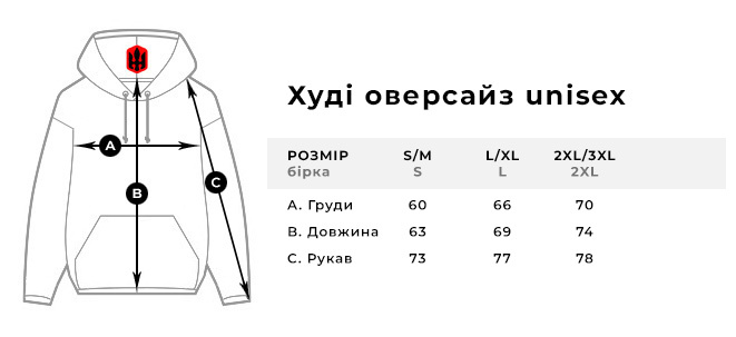 Бірка з розміром S - відповідає розмірам S/M, бірка L - відповідає розмірам L/XL, бірка 2XL - відповідає розмірам 2XL/3XL. Можлива похибка 1-2 см.